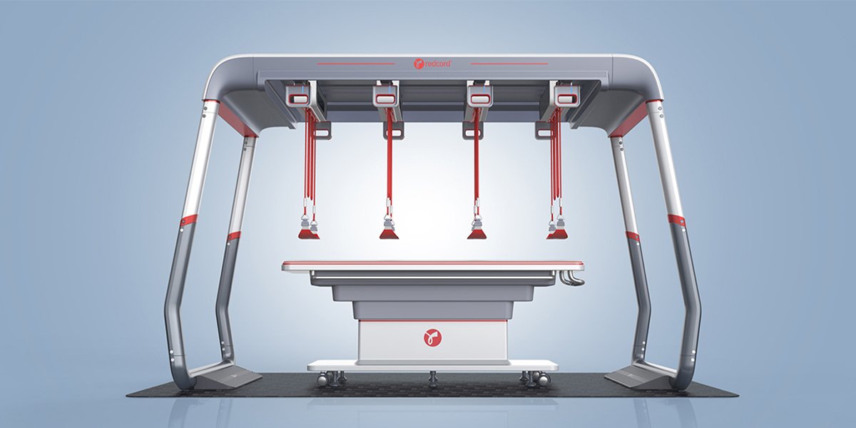 “紅繩“ 康復(fù)理療終端是一款集康復(fù)醫(yī)療和運(yùn)動(dòng)健身一體的設(shè)備。設(shè)計(jì)團(tuán)隊(duì)將移動(dòng)模組和醫(yī)療床進(jìn)行有機(jī)組合,打造了一體化的外觀設(shè)計(jì)形象。